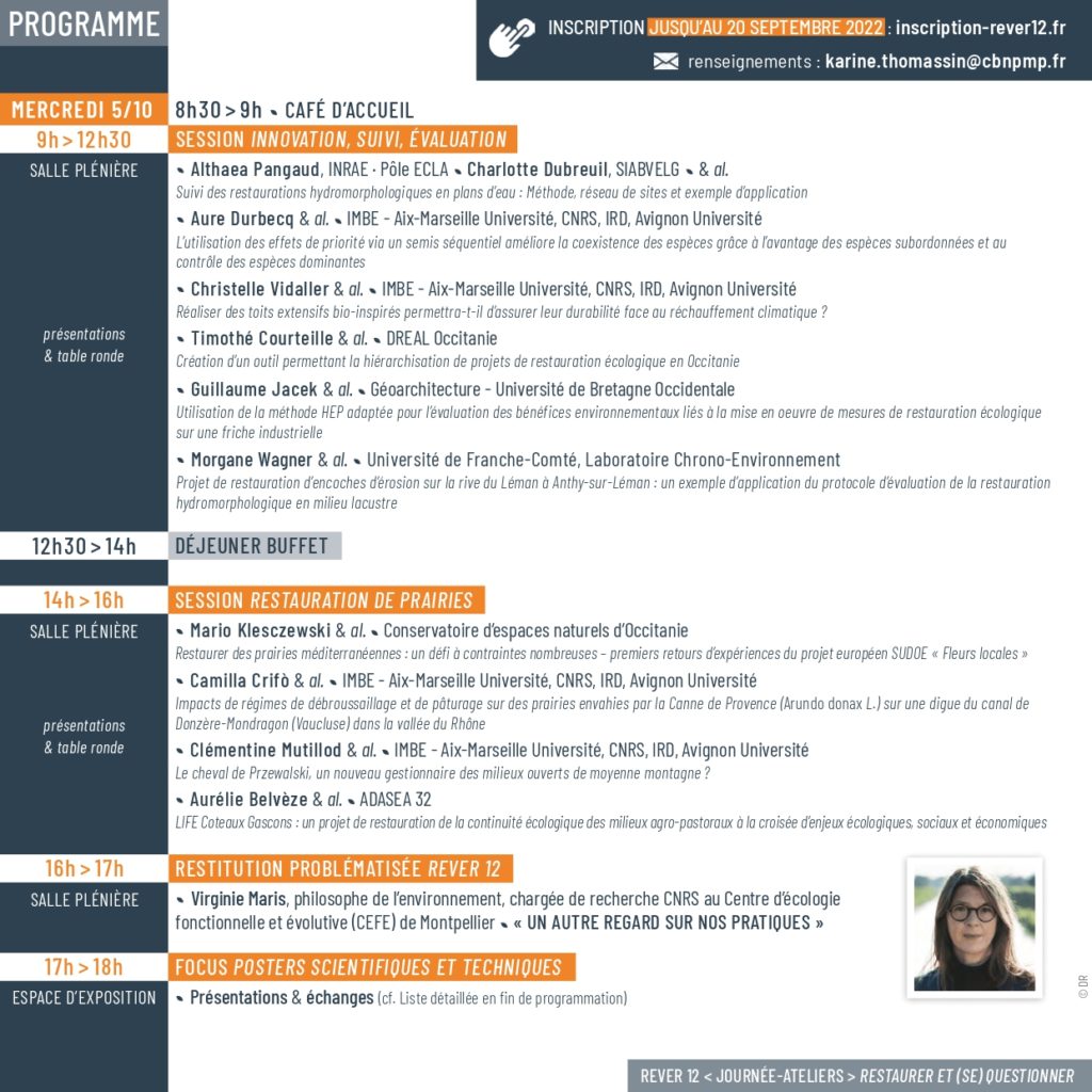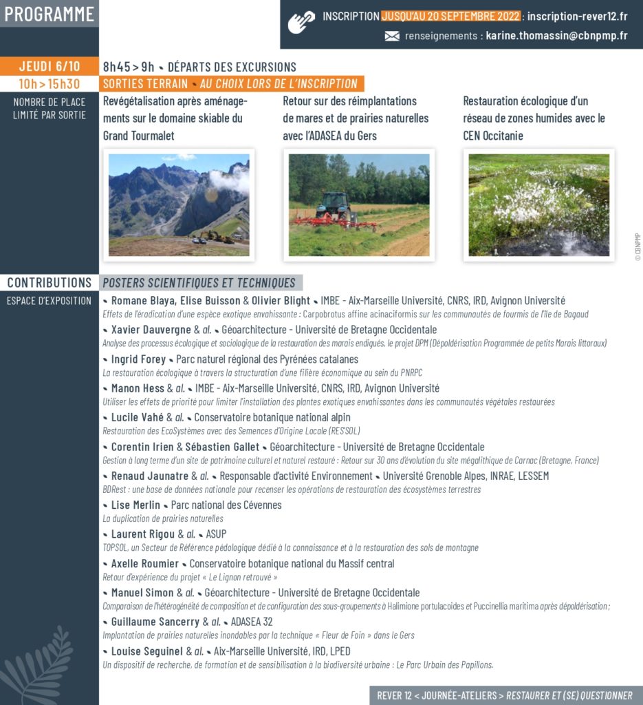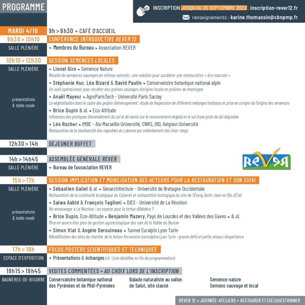 Programme REVER 12 – Restaurer et (se) questionner – 4 au 6 octobre 2022 Auteur/autrice de la publication :ReseauRever Publication publiée :6 septembre 2022 Post category:Non classé Programme REVER 12 - Restaurer et (se) questionner - 4 au 6 octobre 2022 Vous devriez également aimer Restauration et reconnexion des marais littoraux: regards croisés sur une solution d’adaptation aux changements globaux 8 octobre 2021 SER Europe démystifie les idées fausses sur le règlement européen sur la restauration de la nature 11 mai 2023 REVER11: Restaurer et s’enraciner – Gap, du 29 juin au 1er juillet 2021 30 juin 2021